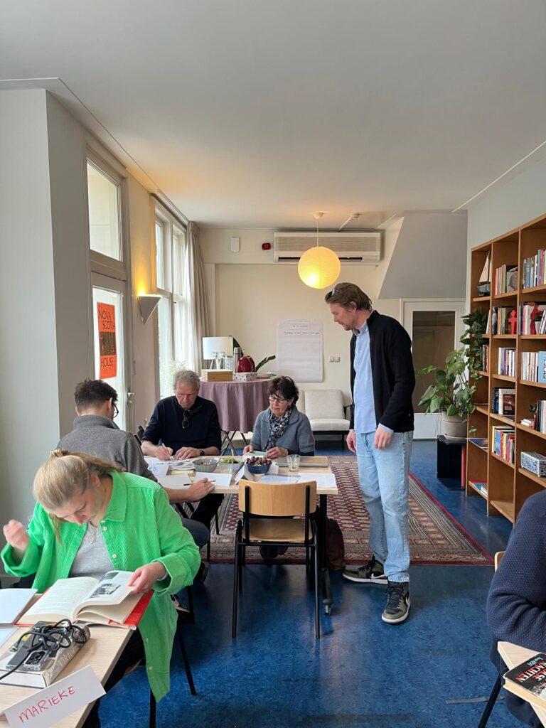 ‘Ik vond beide dagen heel bijzonder en leerzaam. Niet alleen was het zoeken bij het NIOD heel verrassend, ook het kijken naar bouwstenen in boeken en de verschillende schrijfoefeningen met voorbeelden uit het boek van Bas, vond ik heel verhelderend. Ook de openheid van de andere groepsleden was inspirerend.’